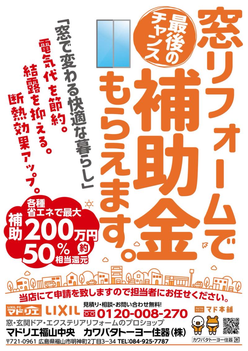 ☆窓リフォーム補助金☆ 最後のチャンス!!