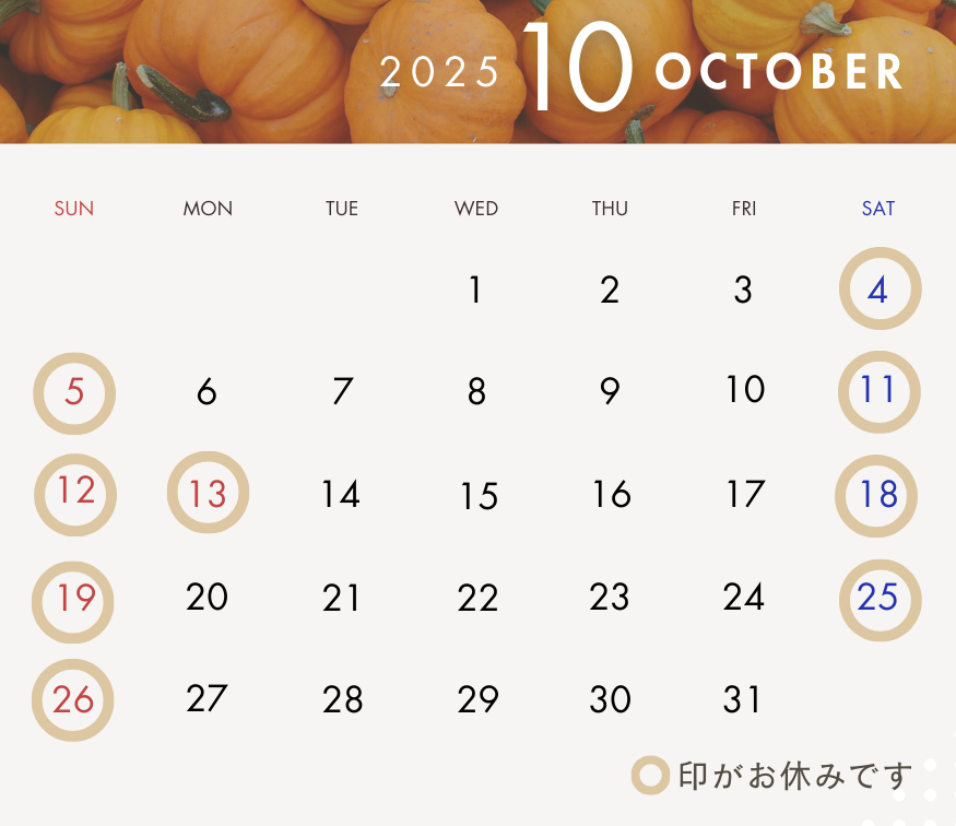 10月の営業日カレンダーです。 ハッピーハロウィン🎃