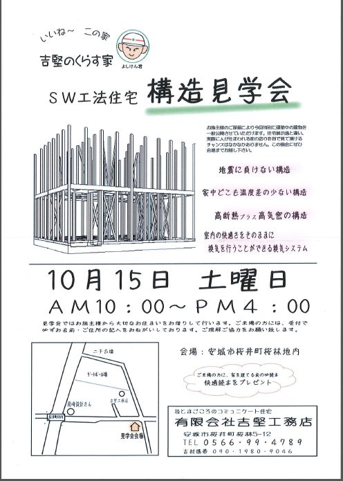 安城市の工務店様 会場:安城市桜井町桜林地内にて 10月15日 土曜日 AM10:00〜PM4:00 構造見学会が開催されます。 お気軽に足を運んでみ...