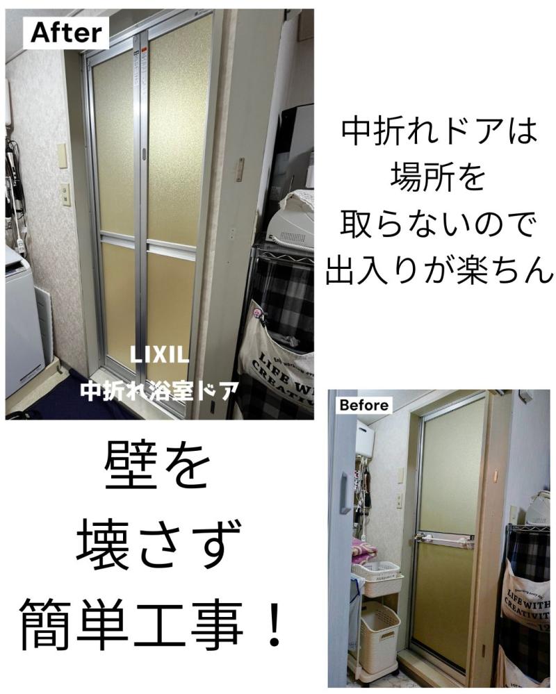 滋賀県高島市でLIXILのリシェント浴室中折れドアの 取り替え工事をさせていただきました。 中折れドアは場所を取らないので、出入りがスムーズになりまし...