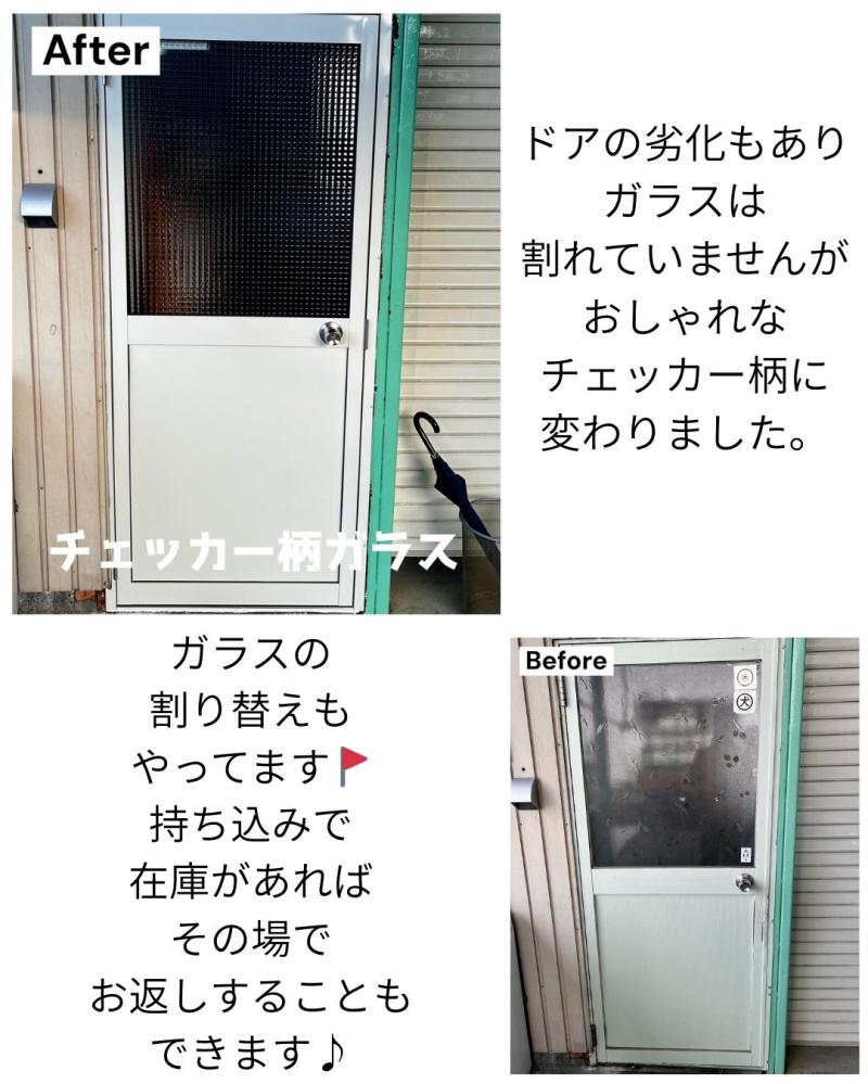 滋賀県高島市で勝手口ドアとガラスの交換をさせていただきました。 劣化によりドアが開け閉めしにくくなっていました。 ガラスも一緒に替えて雰囲気が変わりま...