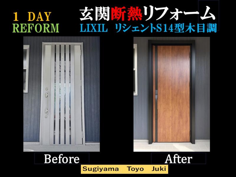 🏠1DAY 玄関断熱リフォーム / LIXIL リシェント S14型(木目調) ✨