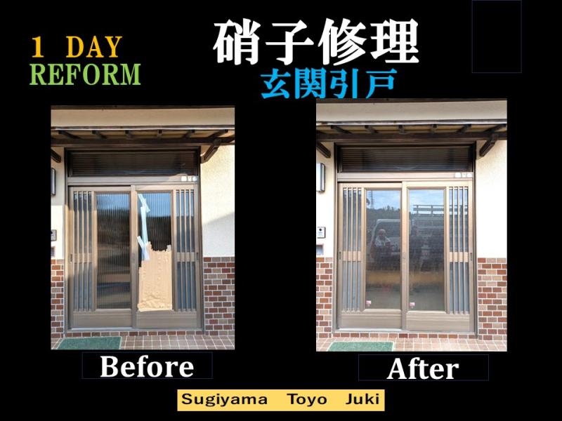 ⚒️ 玄関引戸の硝子修理|割れたガラスを1DAYで安心・美しく✨