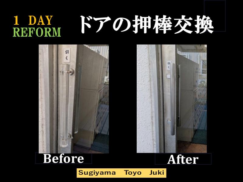 劣化や使いづらさが出ていたドアの押棒を、 新しい押棒へ交換しました。 ドア本体はそのまま活かし、 部品交換のみで操作性を向上させた施工事例です。 くわ...