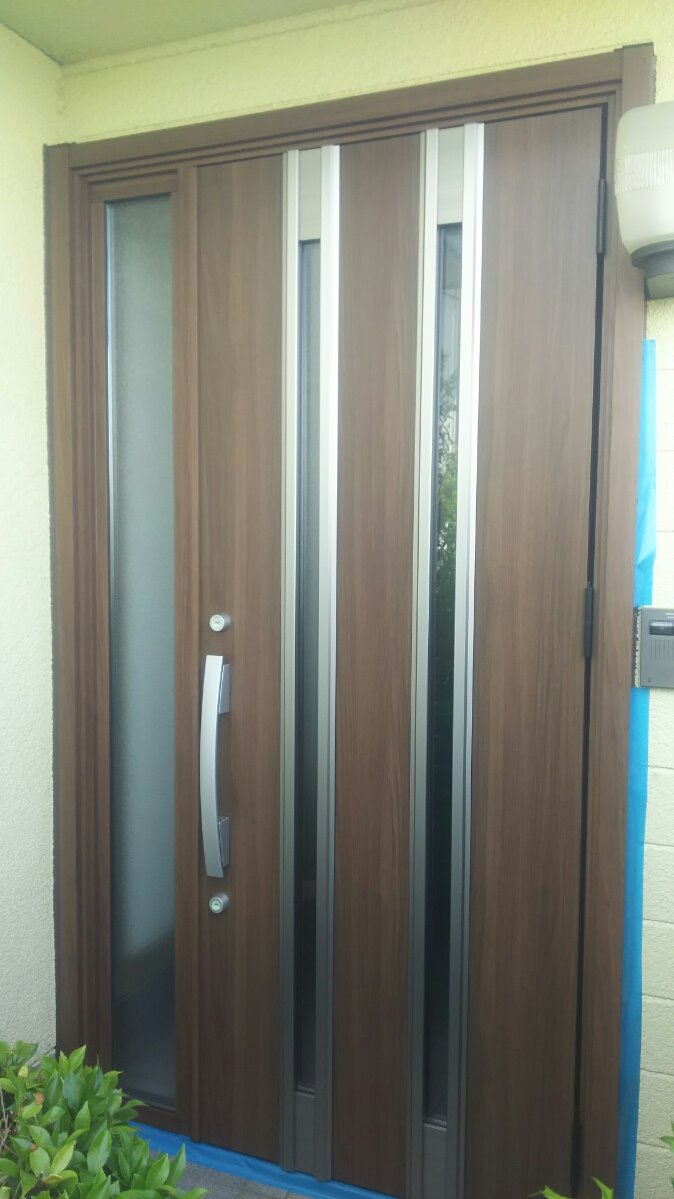 こんにちは。 今回は玄関ドアの交換工事です。 (施工前の写真を撮り忘れました) リシェント玄関ドア3 M83型(採風タイプ)/ハンドダウンチェリー色 ...