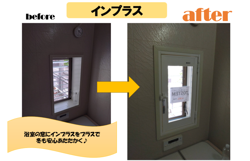 みなさんこんにちは(^^♪ 本日は浴室の窓に内窓【インプラス】を設置した 施工例をご紹介いたします! 施工前 ⇩ 施工後 浴室窓に内窓を設置するだけで...