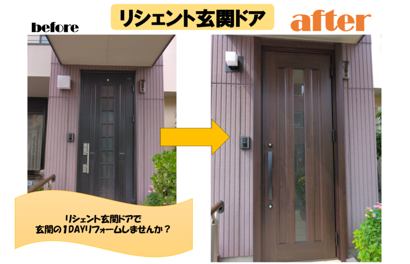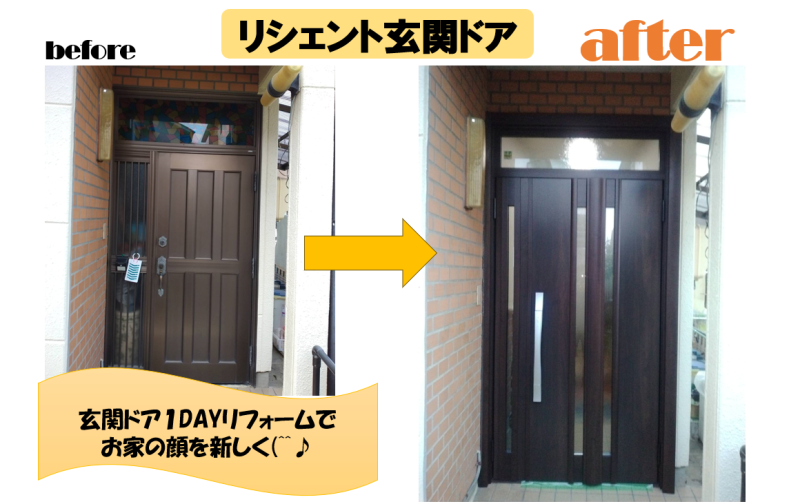 みなさんこんにちは(^^♪ 本日は玄関ドアの取り替え施工例を ご紹介いたします! 施工前 ⇩ 施工後 1日でわが家の表情が美しく、 玄関のお悩みも解消...