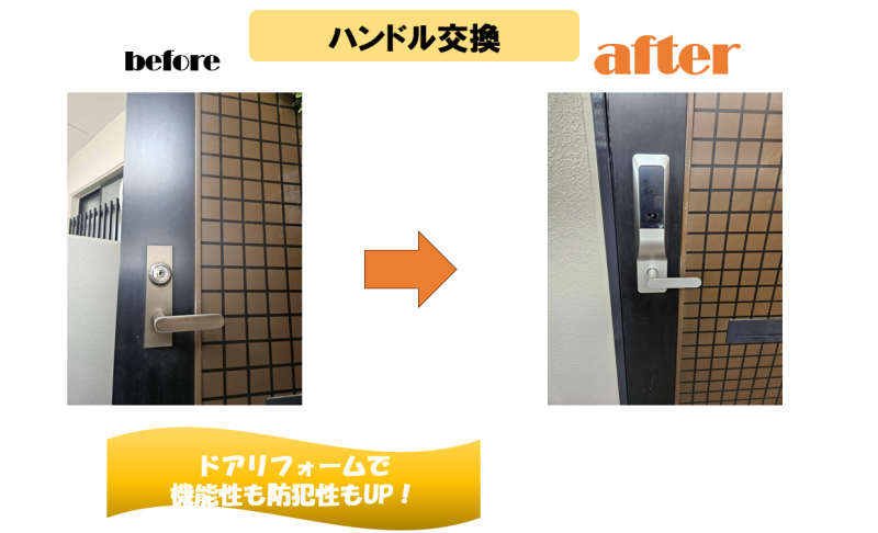 みなさんこんにちは(^^♪ 本日はハンドル交換の施工例を ご紹介いたします。 施工前 ↓↓↓ 施工後 鍵穴が見えないハン...