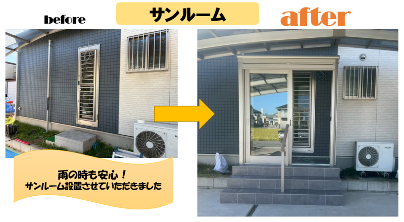 みなさんこんにちは(#^.^#) 本日はサンルームの施工例を ご紹介いたします★ 施工前 ⇩ ⇩ ⇩ ⇩ 施工後 今回はブロックタイルも弊社にて施工!...