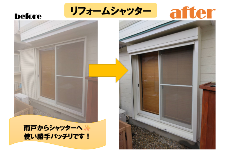 みなさんこんにちは(#^.^#) 本日は雨戸からシャッターへの 交換施工例をご紹介いたします★ 施工前 ⇩ 施工後 施工前 ⇩ 施工後 外観を損なわな...