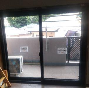 枠はそのままでカバー工法用LIXILリプラスマンション用 外部アルミ内部樹脂の複合サッシ loweグリーン硝子型板仕様を取り付けしました 幹線道路沿い...