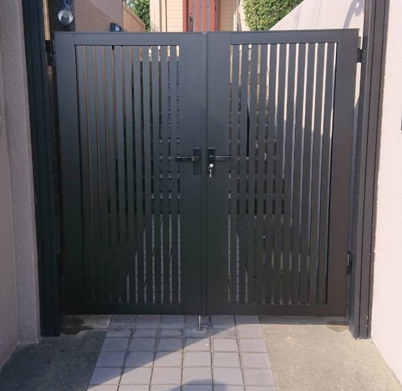門扉工事の施工例です。 既設の門扉が壊れてしまい 柱のみある状態でした。 柱ごと取り替えるのは大変だということで 新しく本体を吊りこめるようにできない...