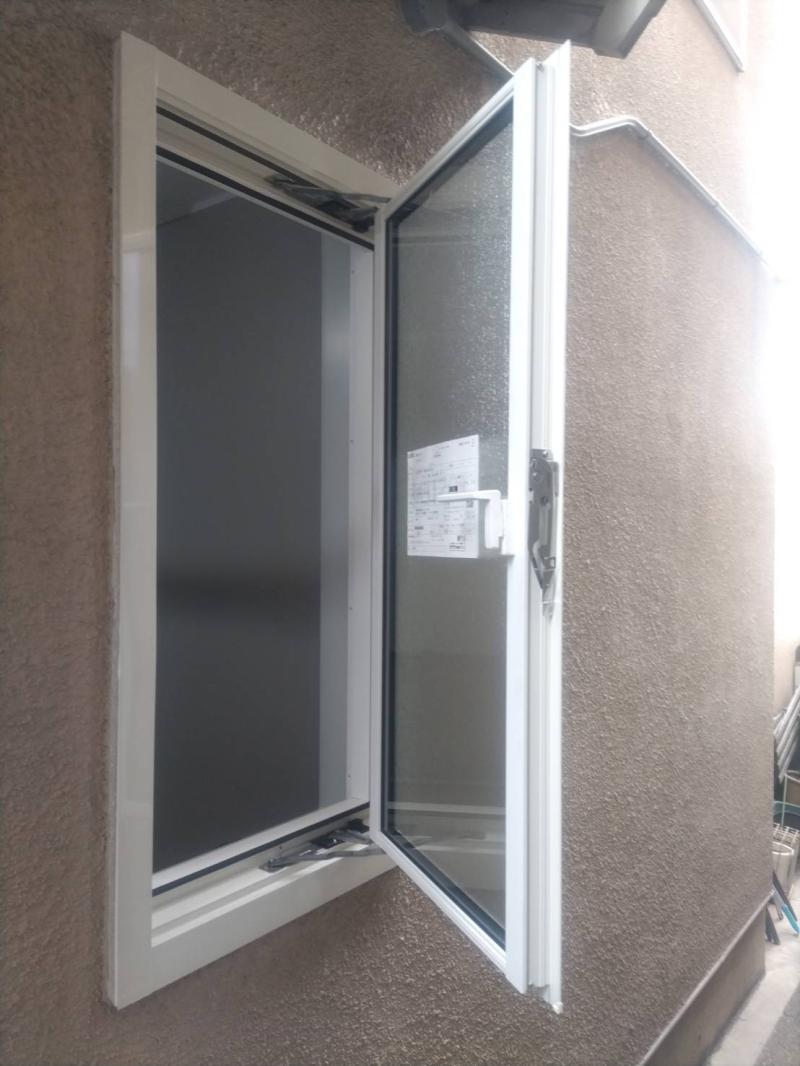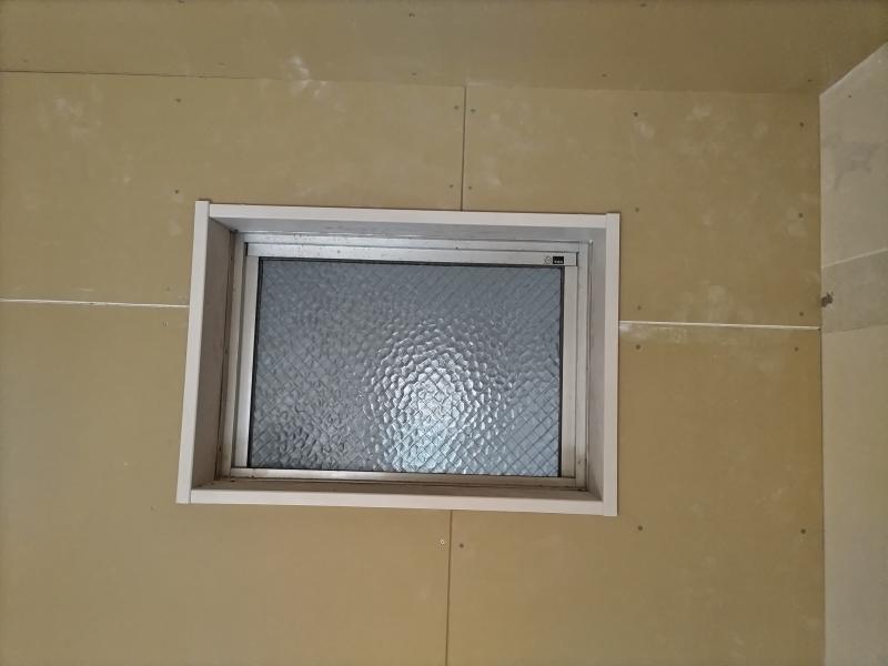 浴室のユニットバス工事に伴い 窓をカバー工法で取替させていただきました。 LIXIL リプラス浴室用 横すべり窓 カムラッチハンドル Low-eガラス...