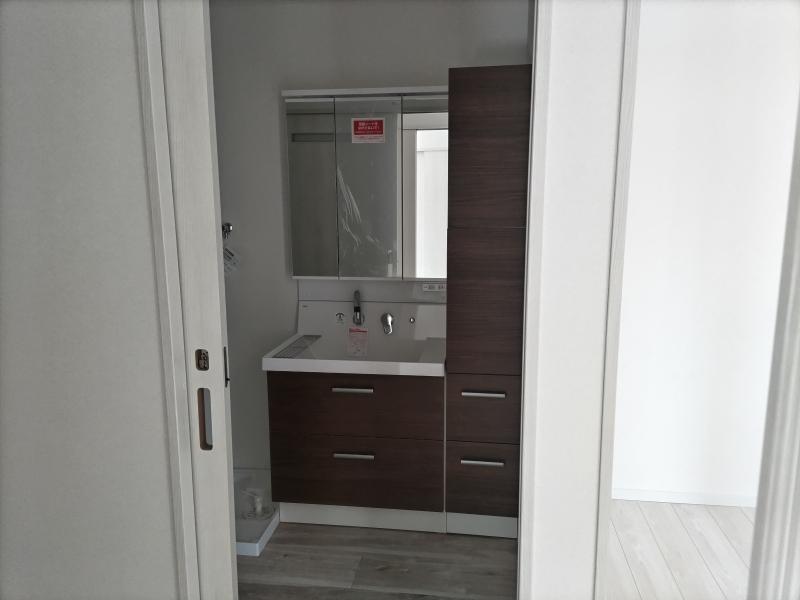 LIXIL洗面ピアラを新設いたしました。 洗面脱衣に余裕がありましたのでコーディネイトで収納を取り付けいたしました タオルやバスタオルといったちょっと...