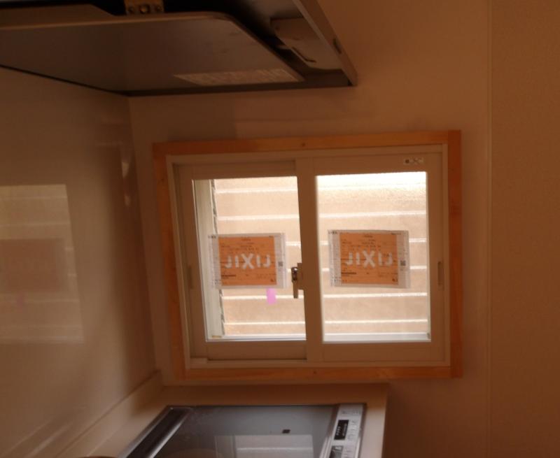 キッチンのジャロジー窓 通常ですとハンドルが邪魔をしてインプラスを取付が出来ないので、あきらめた方も多いと思います このように枠を多めにふかすことが出...