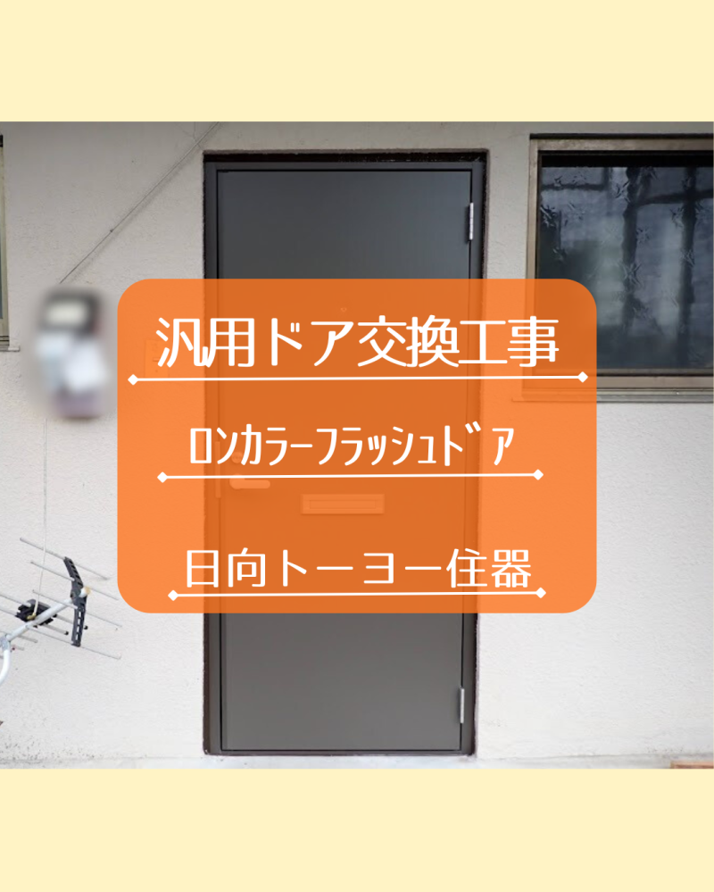こんにちは😊日向トーヨー住器です。 今回は某ビル住居、玄関ドア交換工事のご紹介です★ オーナー様からご依頼を受け、数部屋の老朽化した玄関ドアを LI...