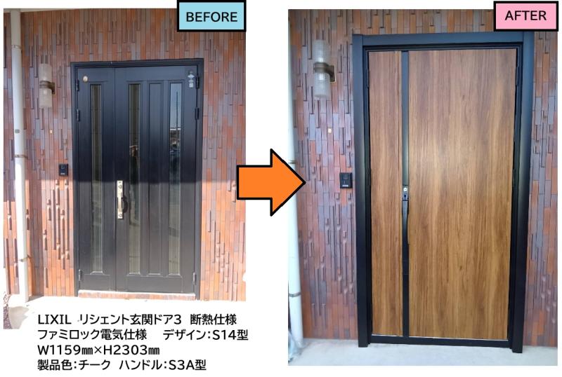 玄関ドアリフォーム「リシェント」の取付工事をさせていただきました! 現場 : 小田原市 BEFORE AFTER 商品 : リシェント玄関ドア3 (リ...