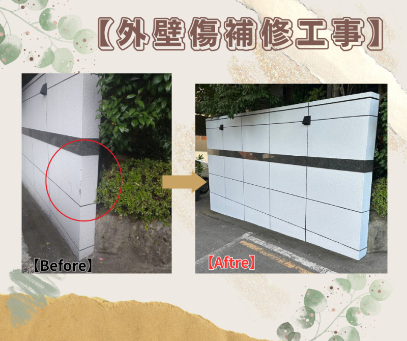 某ホテルより外壁傷補修依頼がありました。 観光バスが壁にぶつかり傷になったとのことで 至急、塗装屋に工事依頼いたしました。 ...