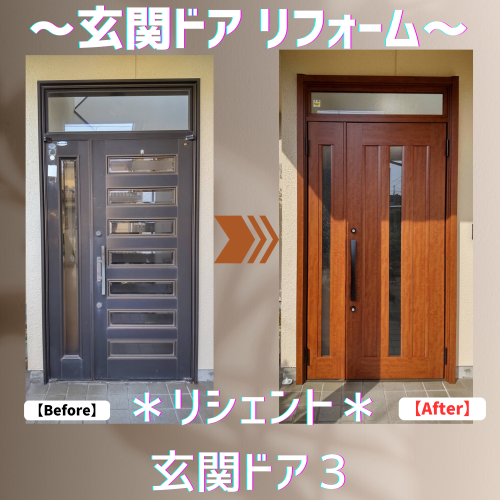 先日、鹿児島市内にお住いのT様邸の 玄関ドアのリフォーム工事をさせていただきました。 この度は、ご依頼いただき誠にありがとうございました。 ◆リシェン...