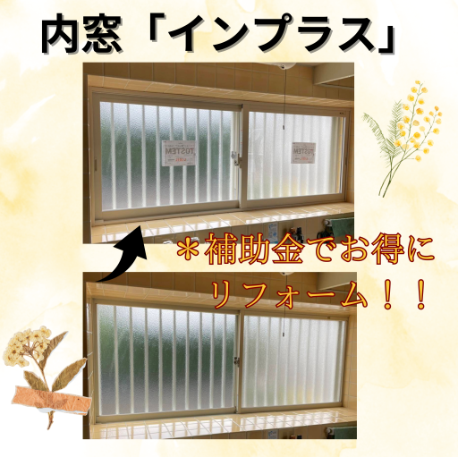 今回は、窓リフォーム『インプラス』のご紹介です。 補助金を活用して窓リフォームをさせていただきました。 今からの寒い季節に『インプラス』を設置するのは...