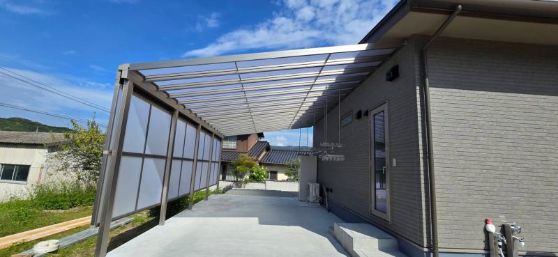 カーポート ポリカ屋根材交換 (施工後) (施工前) 所々、ひび割れや穴が開いている所があり 屋根材のみの交換 年数が経つとどうしても劣化してしまいま...