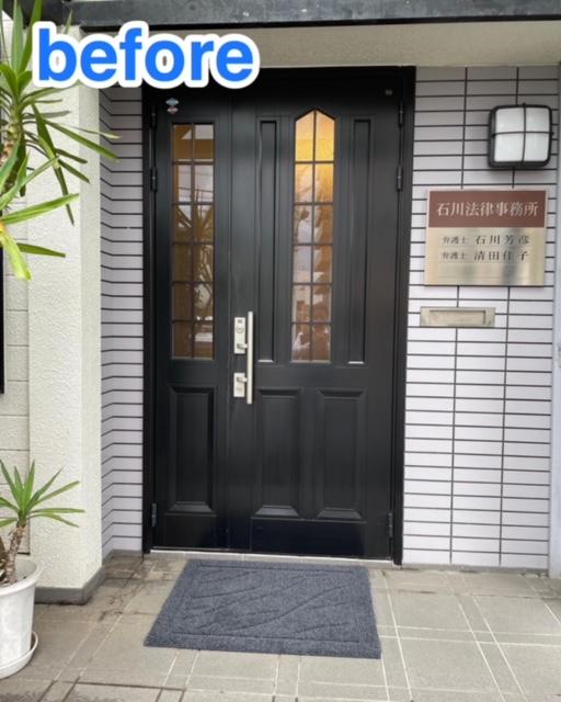 玄関ドア交換工事と内窓取付工事を行いました。 《玄関ドア交換工事(カバー工法)》 ☆施工前☆ ★施工後★ 《内窓(インプラス)取付工事...