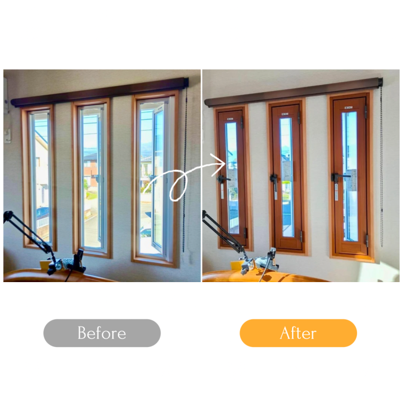 採用商品 インプラス Low-Eグリーン遮熱 ショコラーデ 窓からの冷気でお困りのトイレの窓に内窓を設置しました! 内窓の設置で断熱性が大...
