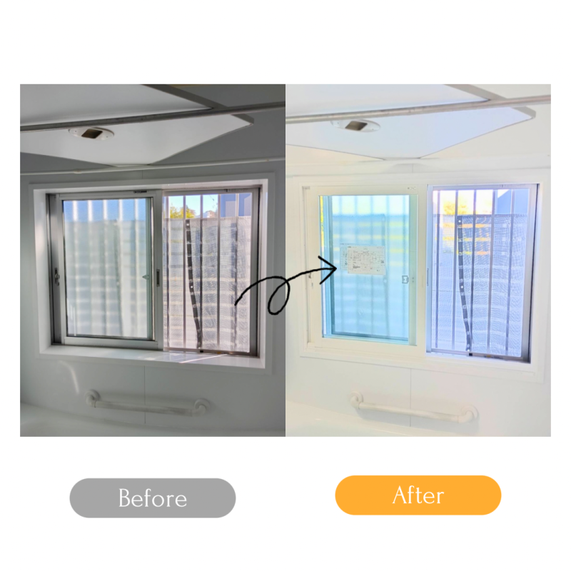 採用商品 インプラス 浴室仕様 Low-Eグリーン高遮熱 プレシャスホワイト ヒートショック対策のために浴室に内窓を設置しました! 急激な温度変化は身...