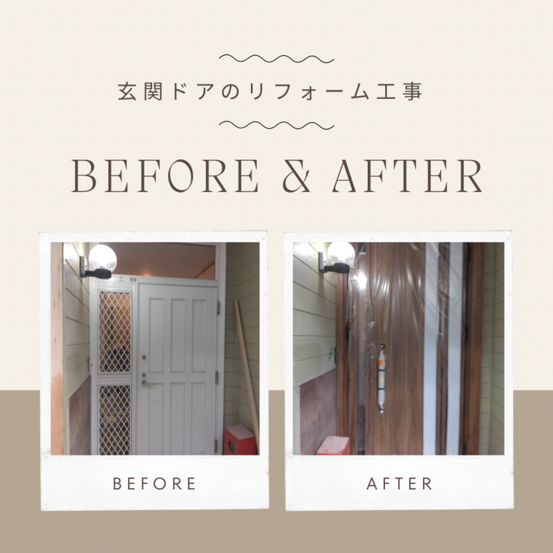 玄関ドアが上質感ある木目調にリフォームされました!