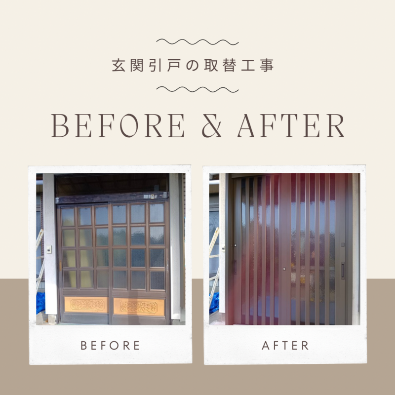 玄関引戸をリシェントP19型に!住宅省エネ2025補助金を活用しました! 古くなった縦通しの玄関引戸を、LIXILの「リシェントP19型・横通」へリフ...