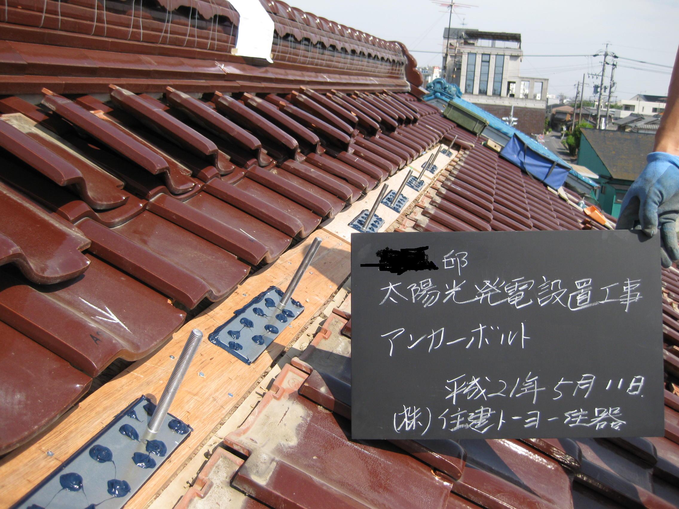 羽島市 S様邸 (既設・瓦屋根) ①瓦取り外し、支持金具取付②瓦穴あけ加工、瓦取り付けと防水③モジュール設置と配線④完成 210w×20枚...