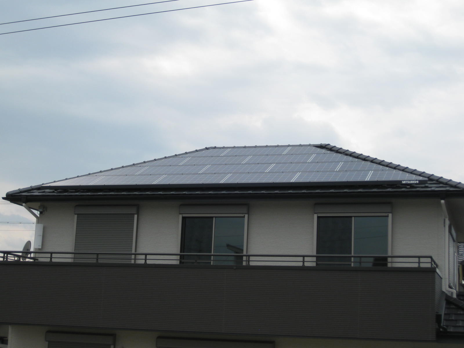 三菱の太陽光発電です。寄棟の屋根にも取り付けました。