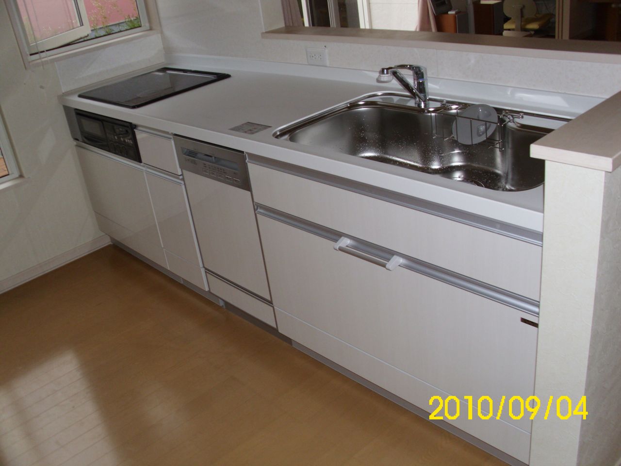 トステムの 『HLキッチン』 をご使用でしたが、 食器洗い乾燥機付き にしたいとのご要望で下台だけを 『ヴィートワン』 に入れ替えました。 形はⅠ型2...