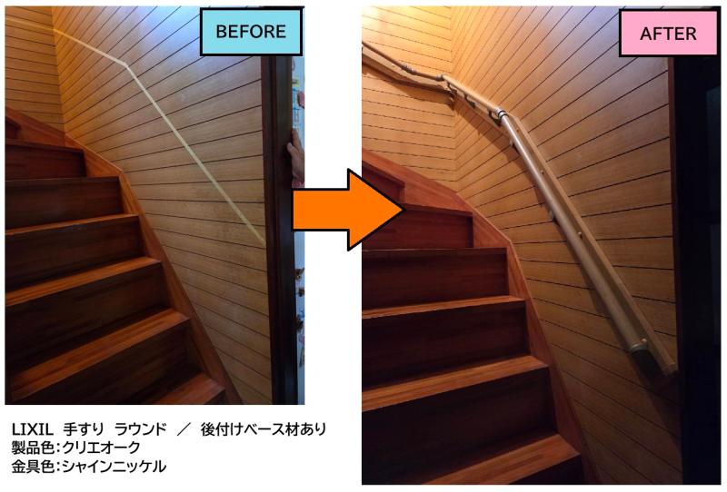 手すり取付工事をさせていただきました! 現場 : 秦野市 BEFORE AFTER 商品 : 手すり ラウンドタイプ 製品色 : クリエオーク 金具色...