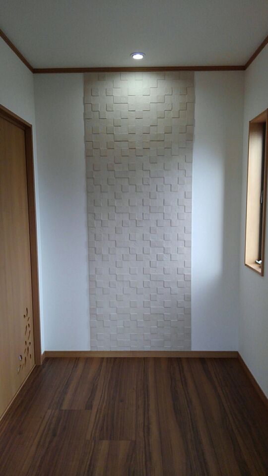 国見町 Iさま邸新築工事! 内部のエコカラット工事も竣工しました。 リビング、 玄関 他 施工させていただきました。 お部屋の脱臭効果もあるので ...
