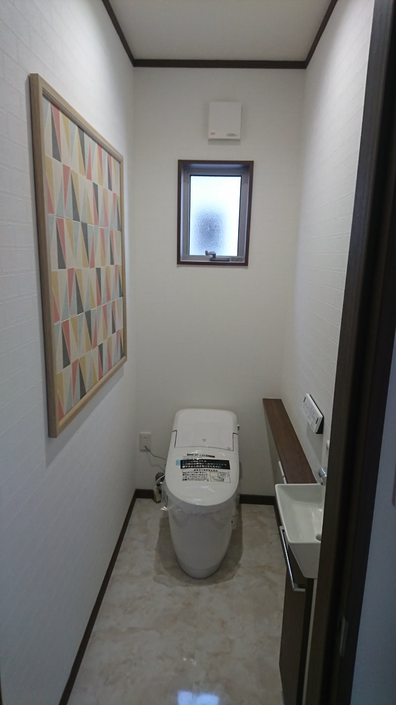 エコカラット工事で デザイン調の色合いを えらんでいただきました。 トイレ内部 防臭を兼ねているので いいですね! と施主様も喜んでおられました。 ...