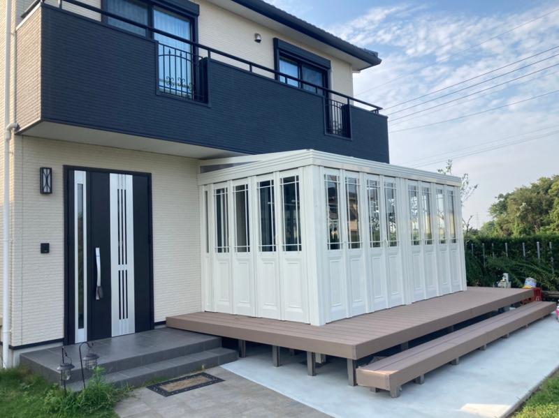 こんにちは☔ 今日はウッドデッキの施工例をご紹介します✨ 木製のウッドデッキからLIXILの樹ら楽ステージに交換です🌳 こちらはリサイクル樹脂と木粉...