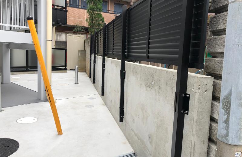 コンクリートの壁にアルミフェンスを取り付けました。 強度を保つため、アルミフェンスの柱を伸ばして、アルミブラケットを使いしっかりと固定。 コンクリート...