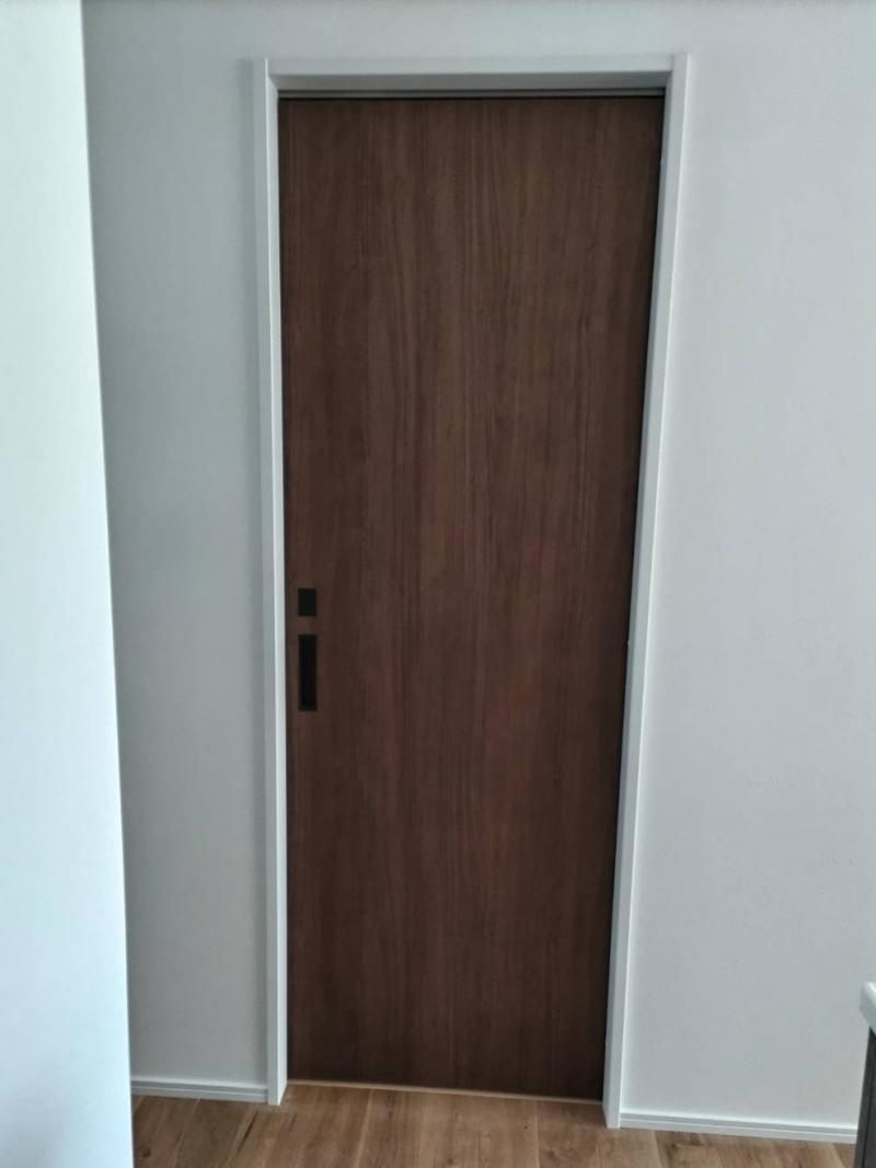 LIXIL ラシッサS 標準ドア 錠付き 本体:LAA/フラッシュ構造/クリエモカ 建具枠:NC3方枠156見込み/プレシャスホワイト 丁番:3次元調...