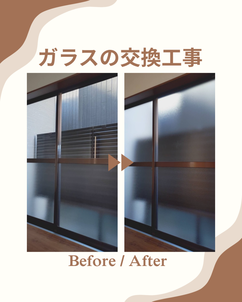 今回は、隣家との距離が近く、室内への視線が気になるとのご相談をいただき、窓ガラスを透明硝子から型硝子へ交換しました。型硝子は光をやわらかく取り込みなが...