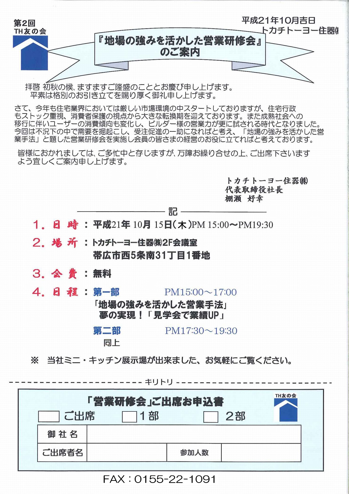 TH友の会 パワーアップセミナー のご案内 「TH友の会」はビルダー様の 営業力、経営力、開発力、信用力、情報力を 強力にご支援いたします。 北海道...