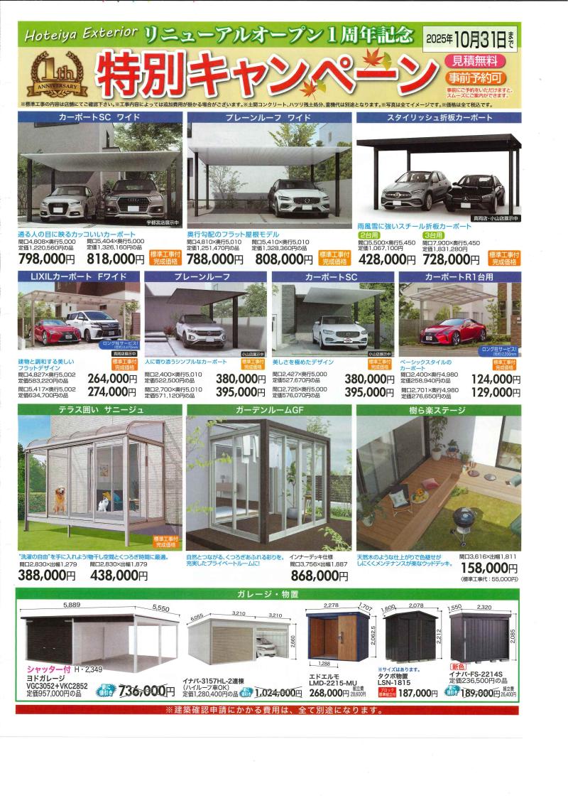 お得なチラシ掲載中! カーポート地域No.1価格・10月31日まで! お求めはお近くの展示場へ!|ホテイヤトーヨー住器|真岡市