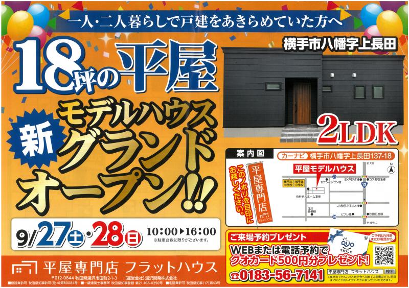 横手市八幡にて平屋のモデルハウスが グランドオープンします 9月27日(土)28日(日)は 内覧会が行われますので ぜひ、ご覧になっていただきたいと ...