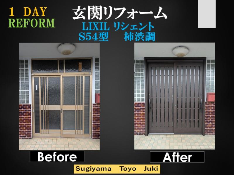 今回ご紹介するのは、**LIXIL リシェント S54型(柿渋調)**を使用した玄関リフォームです。 従来のアルミ枠と型板ガラスを使用した玄関から、重...
