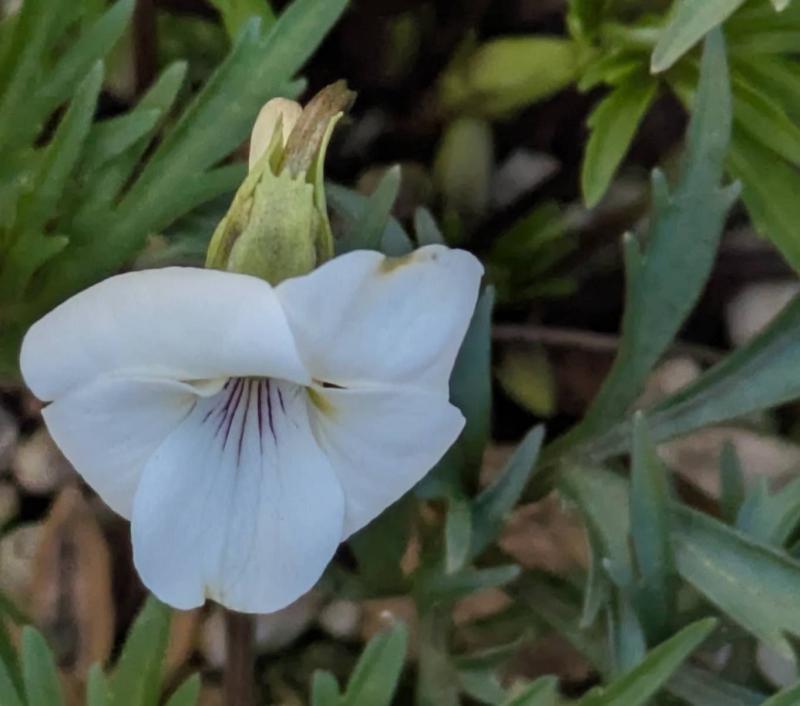 このビオラ ❓3色スミレって名前で2024年11月に購入したもんなんですよ 紫の株は 2025年夏越しもして 元々は3色の色があったんです 黄色はこぼ...