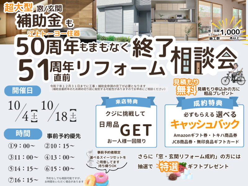 宇佐市で開催!江上トーヨー住器「50周年終了&51周年直前リフォーム相談会」開催のお知らせ
