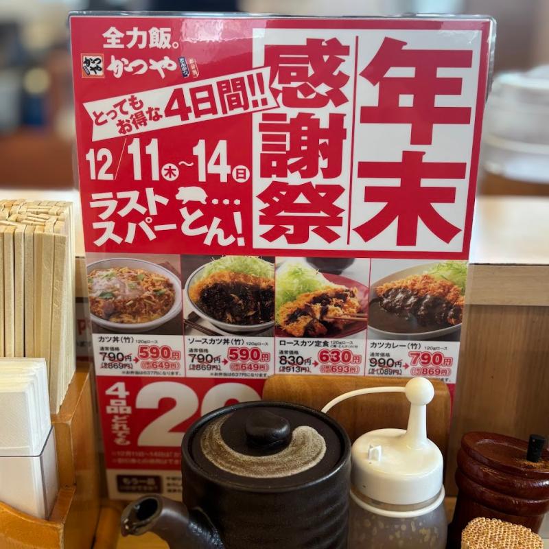 近所と言ってもショールームの近く(笑) 最近高知にもてんやさんが出来たんですがまだまだ人気のようなんで・・いつものかつやさんに(笑) 年末感謝祭期間中...