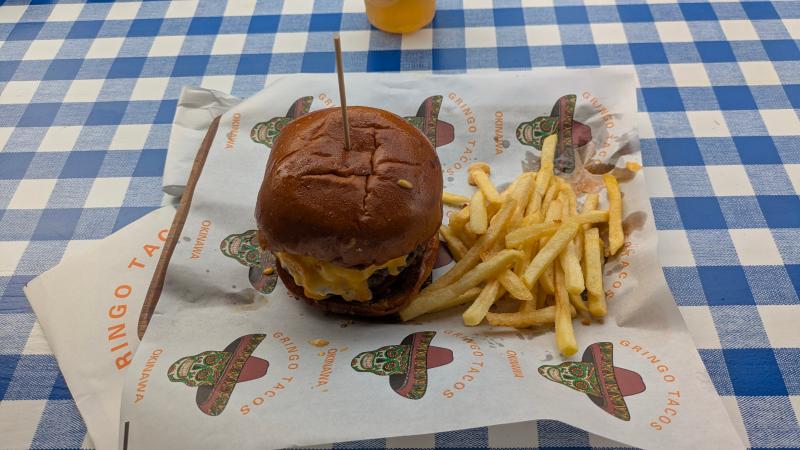 沖縄 糸満市にある「GRINGO」というハンバーガー屋に行きました 店内はメキシカンな明るい店内で パティもビーフ100%で食べ応えアリですね!! 美...