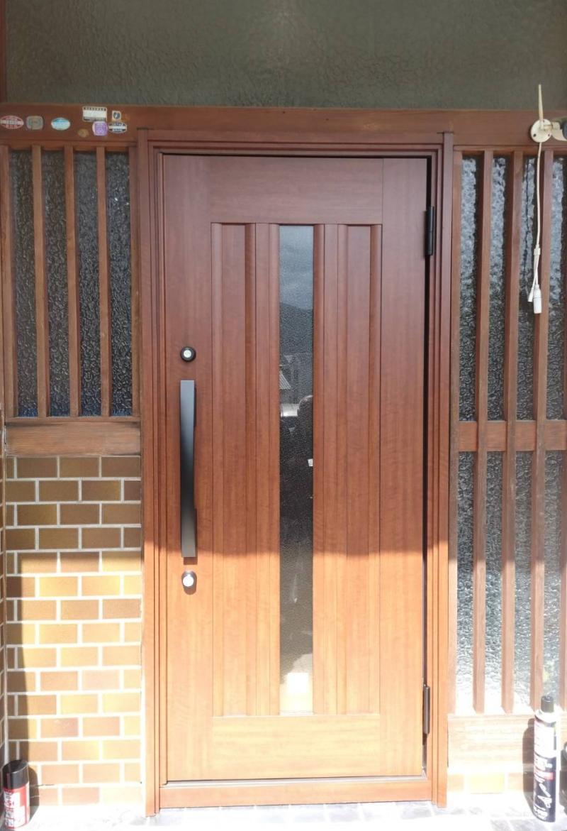 玄関ドア交換工事の施工例です。。 木の玄関ドアが古くなり 取り換えたいとのご希望でした。 ドア部分と全体を2通りご検討されましたが ドア部分のみとのこ...