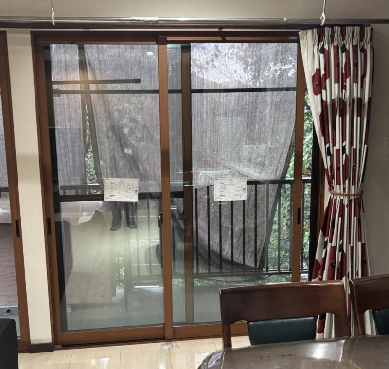 内窓の施工例です。 掃き出し窓に内窓を取付させていただきました。 LIXIL インプラス LOW-Eガラス キャラメルウッド 断熱、遮熱、防音、結露軽...